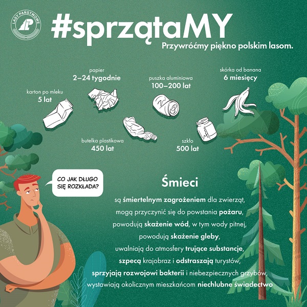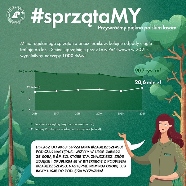 Śmieci w lasach to problem nie tylko estetyczny. Odpady na terenach leśnych to często pułapki dla drobnych zwierząt, szczególnie dla owadów. Wabią je resztki pokarmów i napoi. Lasy Państwowe wkładają ogromny wysiłek w usuwanie śmieci z lasów. Każdego roku ich uprzątnięcie kosztuje kilkanaście milionów złotych. W ostatnich latach na ten cel wydawane jest ok. 20 mln zł. Co roku z lasów wywozi się średnio 110 tys. m3 śmieci.
